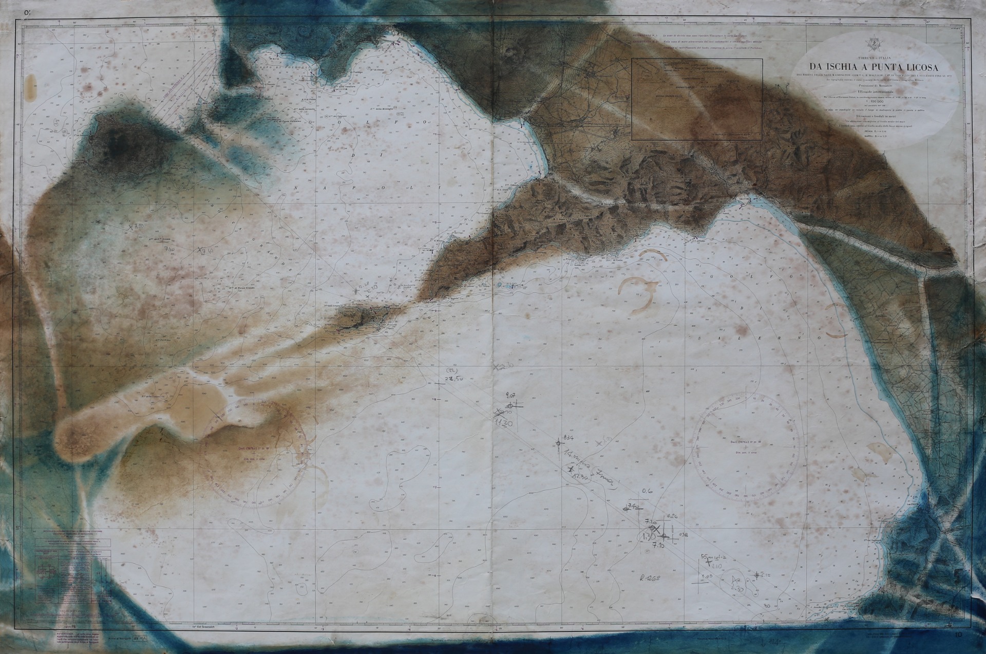 Concetta DE Pasquale - Navigazioni 2020 - olio,catrame e muffe marine su carta nautica - cm 74x114 (2)